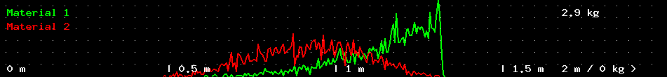 контейнере, а красным - масса 2-го материала. Значения масс (кг), рассчитанные исходя из общей массы каждого материала, заданной в его свойствах, подписаны над столбцами. Белой жирной