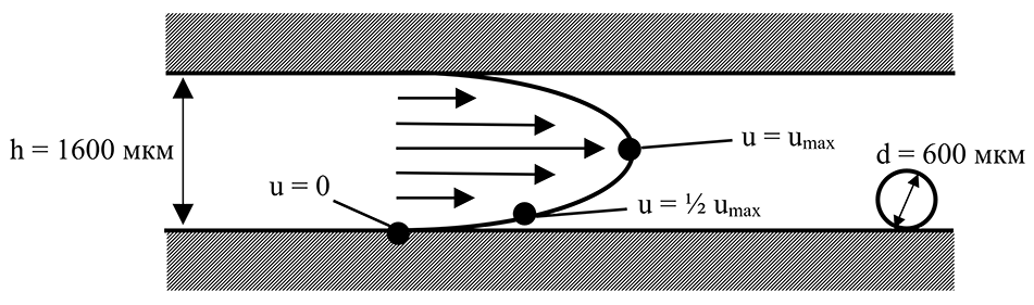 Средняя скорость слоя, действующего на сферическую частицу, м/с,